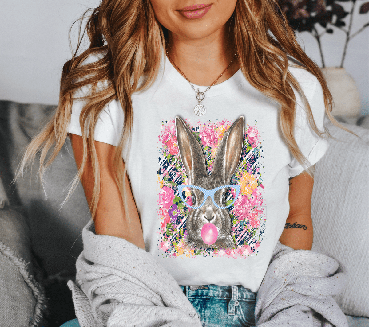Bunny Bubble Gum glasses Navy Easter size ADULT 9. DTF TRANSFERPRINT TO ORDER