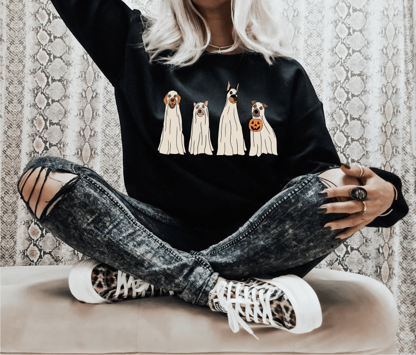 DOG Halloween bucket ghost ADULT DTF TRANSFER PRINT TO ORDER 682