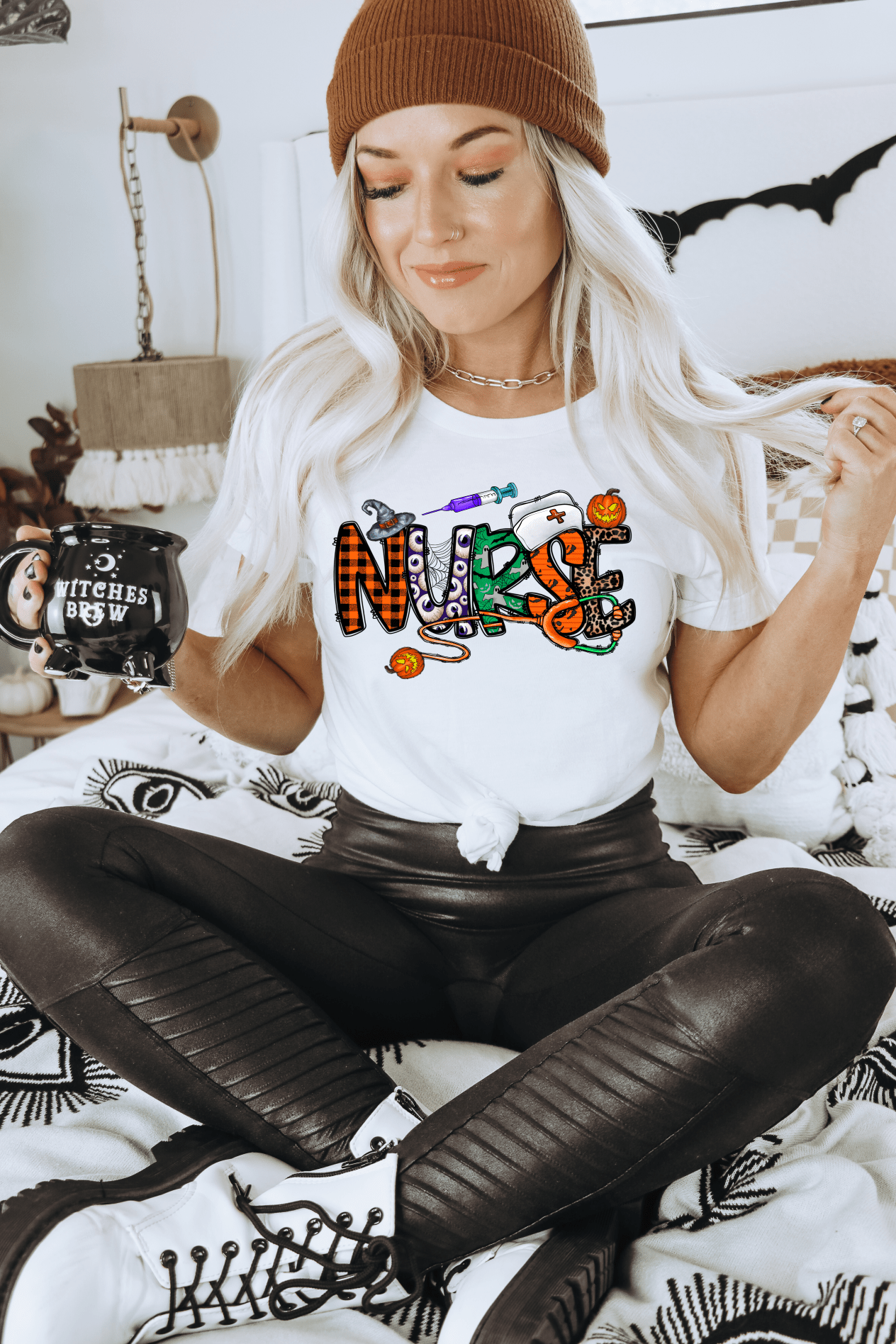 NURSE Halloween pumpkin hat eyebals leopard orange ADULT DTF TRANSFERPRINT TO ORDER