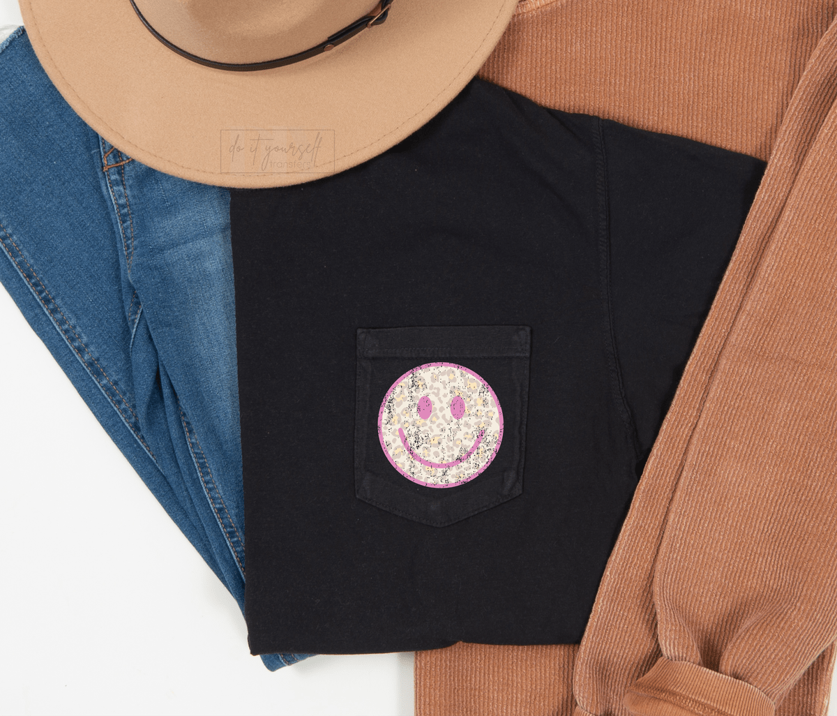 Smiley Face pink leopard / size DTF TRANSFERPRINT TO ORDER