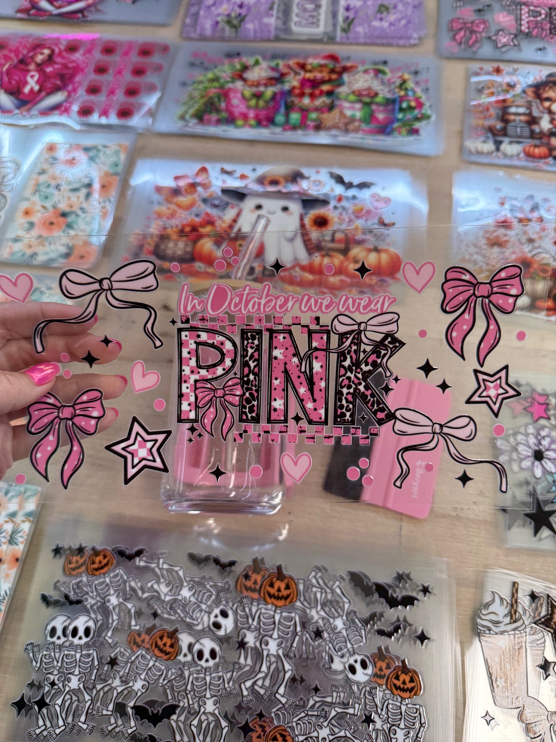 RTS OCTOBER WE WEAR PINK CANCER CUP WRAP UV DTF 16OZ